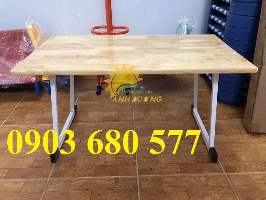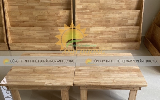 · Bàn ghế gỗ mầm non được làm từ chất liệu gỗ cao su, phủ sơn PU tăng độ bóng và độ thẩm mỹ cho sản phẩm. Không có hóa chất độc hại, an toàn cho sức khỏe của các bé khi ngồi học và vui chơi.