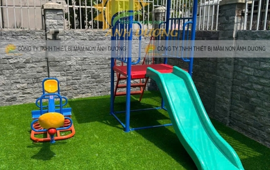 · Cầu thang của cầu tuột được thiết kế an toàn với khoảng cách vừa phải, phù hợp với các bé, chống trơn trượt tốt, giúp trẻ khi bước lên xuống không bị té ngã.