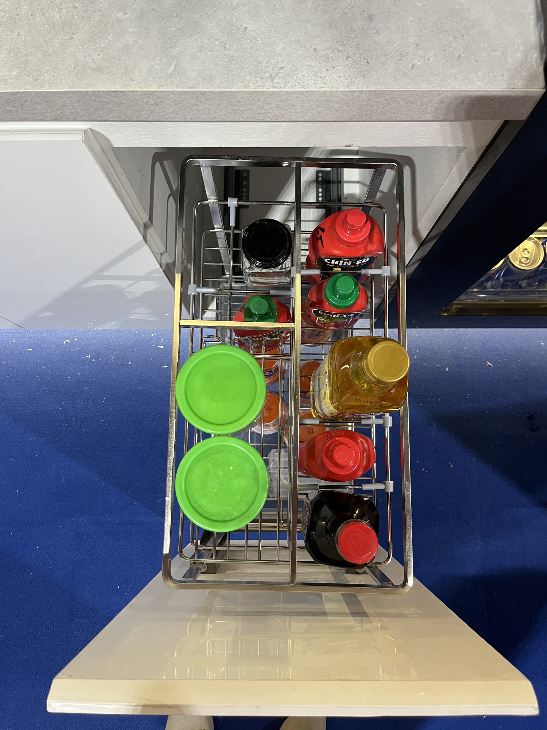 Kệ gia vị TaKing khung rổ thiết kế tinh tế chia thành nhiều ngăn nhỏ với các kích thước khác nhau để thuận tiện cho việc đựng các loại chai lọ gia vị với các kích thước khác nhau.