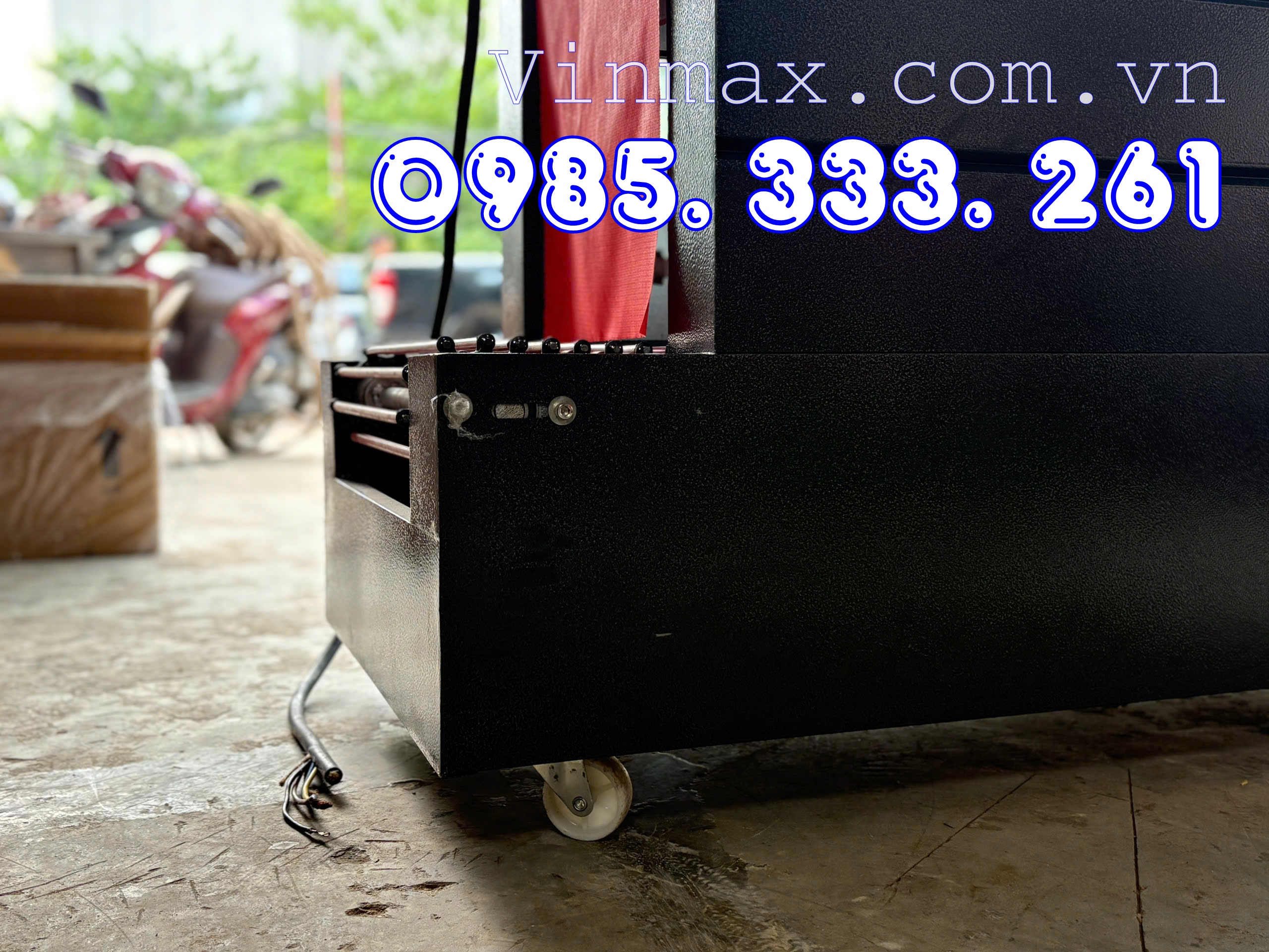 Máy có bánh xe dễ dàng di chuyển đẩy đi đẩy lại tới chỗ tiện lợi dùng